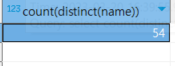 이 둘을 함께 사용하여 name 필드를 중복 제거하고, 총 몇 개의 성씨가 있는지 count 해보겠습니다.