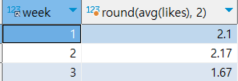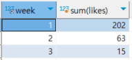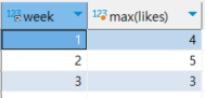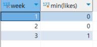 동일한 week 별로 likes 수의 최소값/최대값 구하기