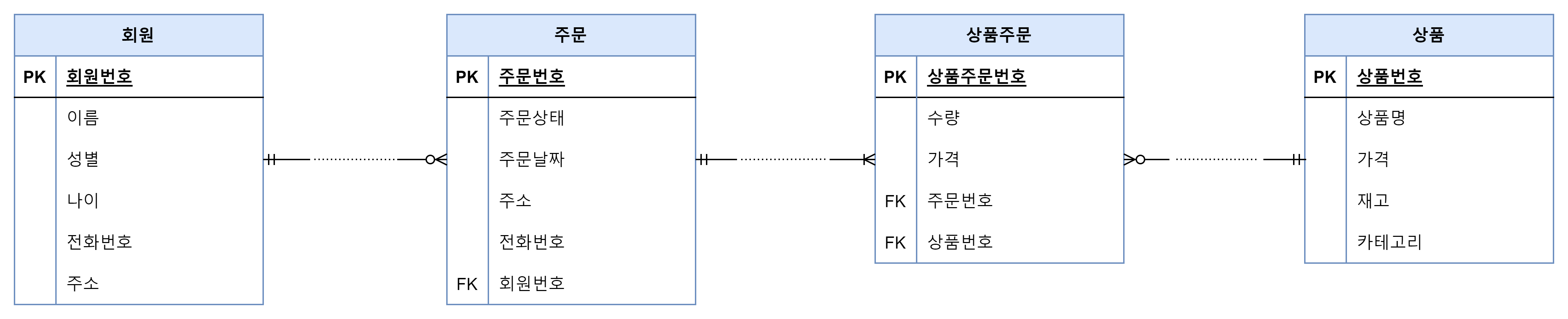 - 한 명의 회원은 주문을 여러 개 할 수 있고, 주문하지 않을 수 있다.