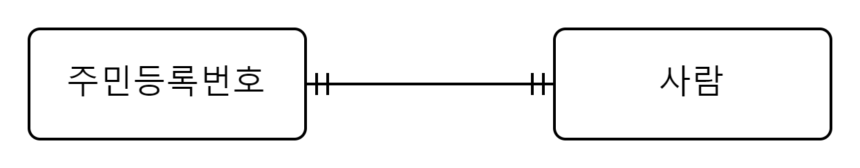 - 한 명의 사람은 하나의 주민등록번호를 가진다.