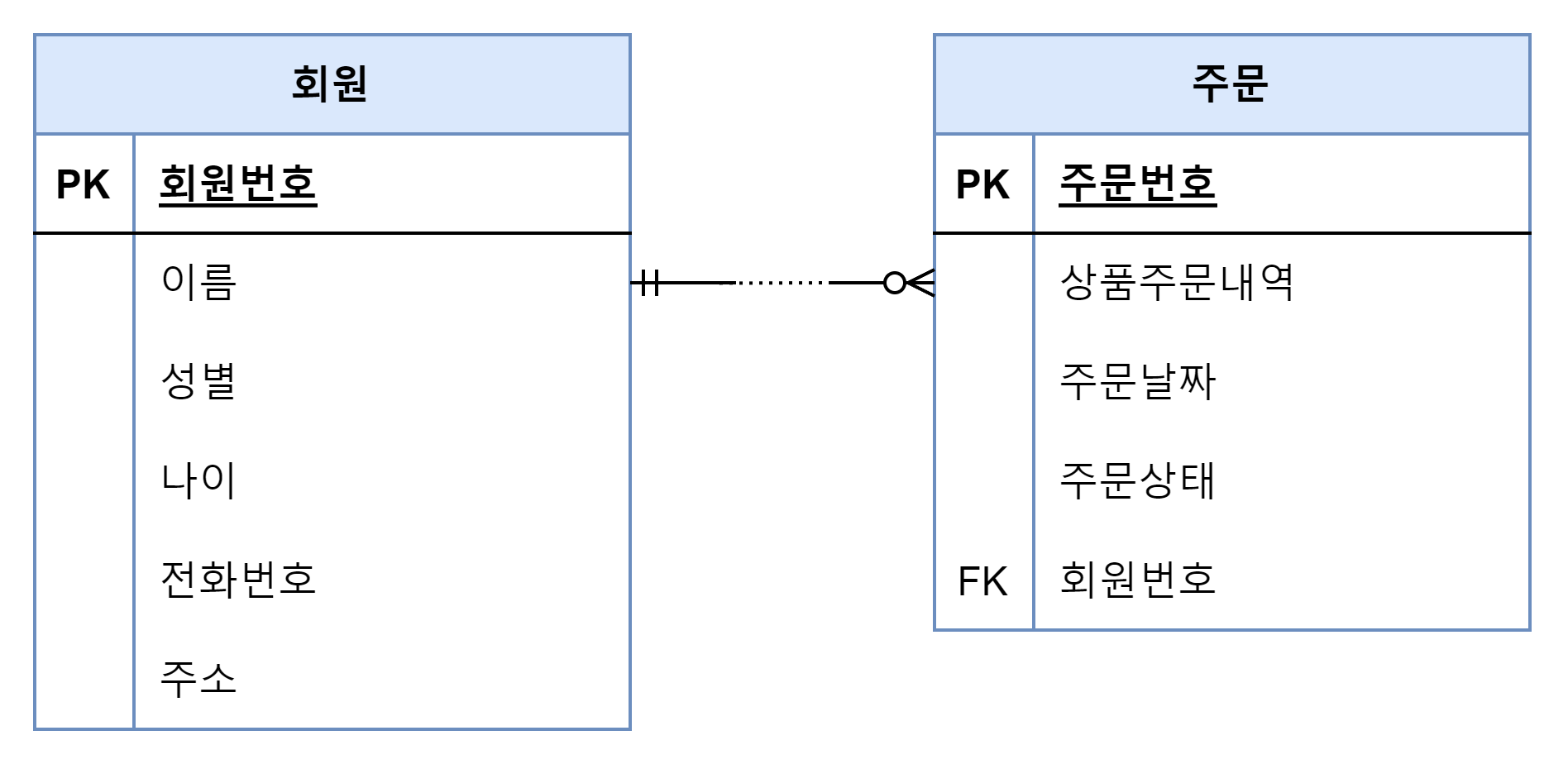 - 하나의 주문은 한 명의 회원에 의해 주문된다 (필수)