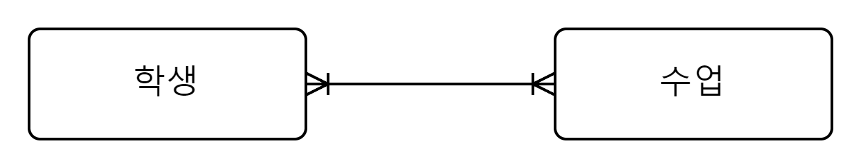 - 하나의 수업을 여러 학생이 들을 수 있다.