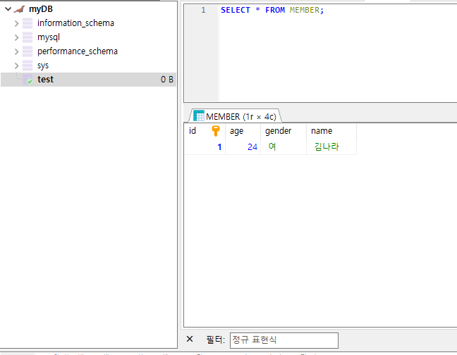 위 테스트를 실행했을 때, mariaDB를 확인해보자.
