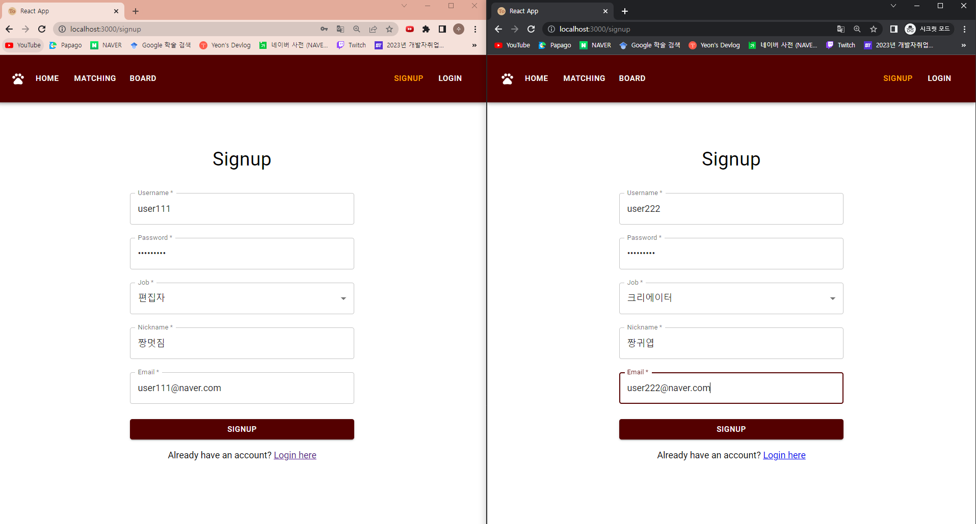 회원가입 화면