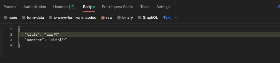 그러면 포스트맨으로 요청을 할 때 다음과 같이 보내면 될 것이다.