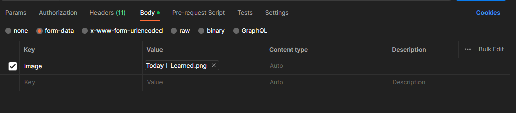 PostMan으로 요청한다면 이렇게 보내면 될 것이다.