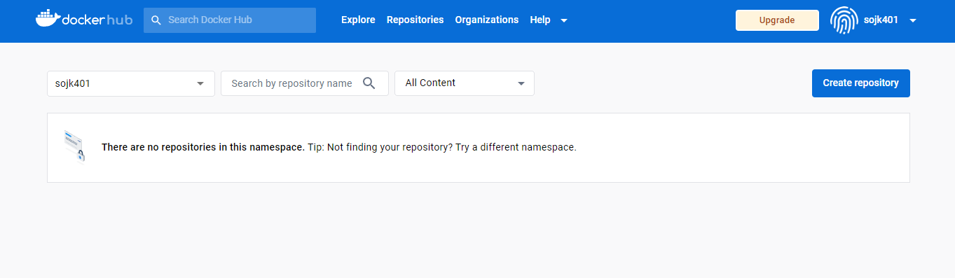 이미지를 docker hub에 올리기 위해서는 레포지토리를 생성해야 한다.