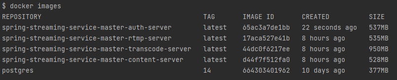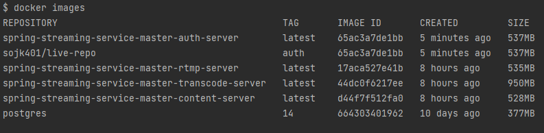기존에 빌드한 이미지들은 다음과 같다. 여기서 spring-streaming-service-master-auth-server를 업로드 해보겠다.