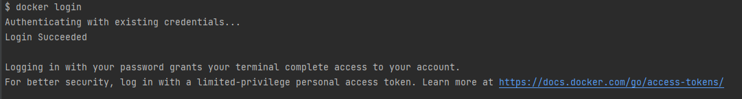 다음 명령어를 수행해 도커 로그인을 진행한다. 처음 로그인하면 아이디와 비밀번호를 요구할 수도 있다.