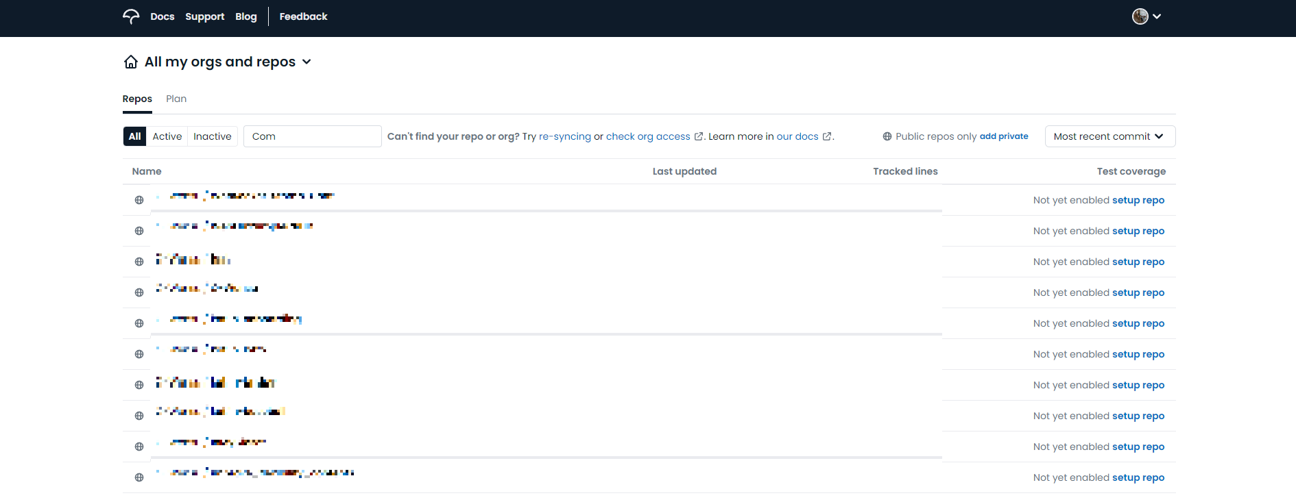 이 중에서 codecov 토큰이 필요한 레포지토리를 선택하자.