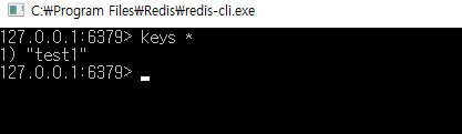 요청을 보내고 원격 접속한 redis-cli 에서 keys * 명령을 입력하면 key-value 데이터가 잘 저장 되었다.