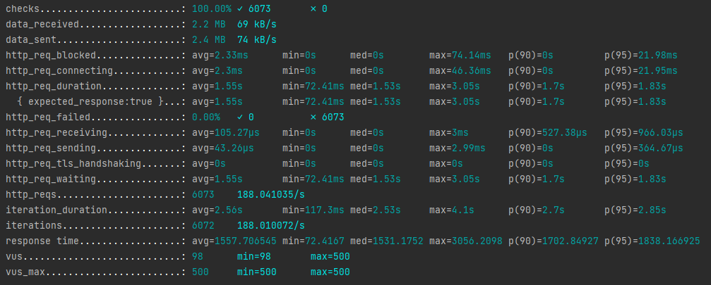 이번에는 가상 사용자 3000명, duration은 30s로 설정했다.