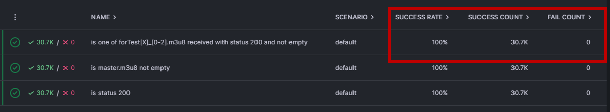 세 명의 스트리머가 방송을 송출하고, 방송 시청을 보내는 가상 유저가 각 채널당 15000명, Duration 30분으로 테스트 해보았다.