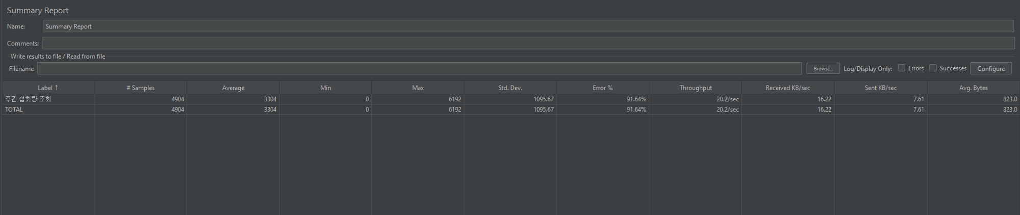 성능 측정 결과, 주간/월간/연간 섭취 칼로리 조회 API의 평균 92%가 응답 시간 1000ms을 초과한다.