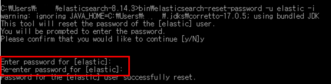 C:\Users\...\elasticsearch-8.14.3>bin\elasticsearch-reset-password -u elastic -i