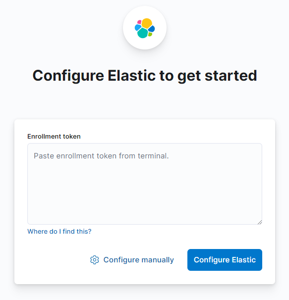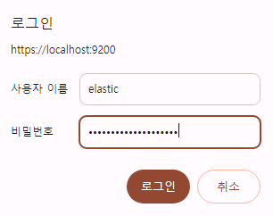 다음과 같은 창이 뜨면, elasticsearch를 실행할 때 받은 토큰 값을 입력해준다.