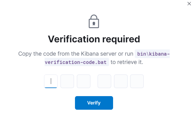 kibana-verification-code 배치 파일을 실행해서 코드를 얻을 수 있다.