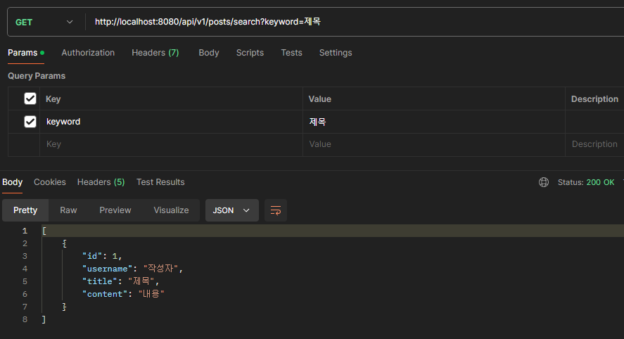 return ResponseEntity.ok(postSearchService.searchByKeyword(keyword));