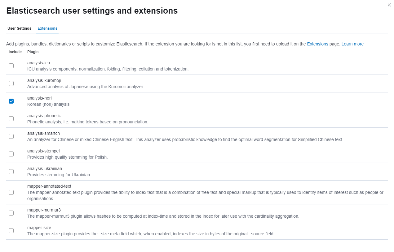 만약 Nori 분석기를 사용한다면 다음과 같이 플러그인을 추가할 수 있다.