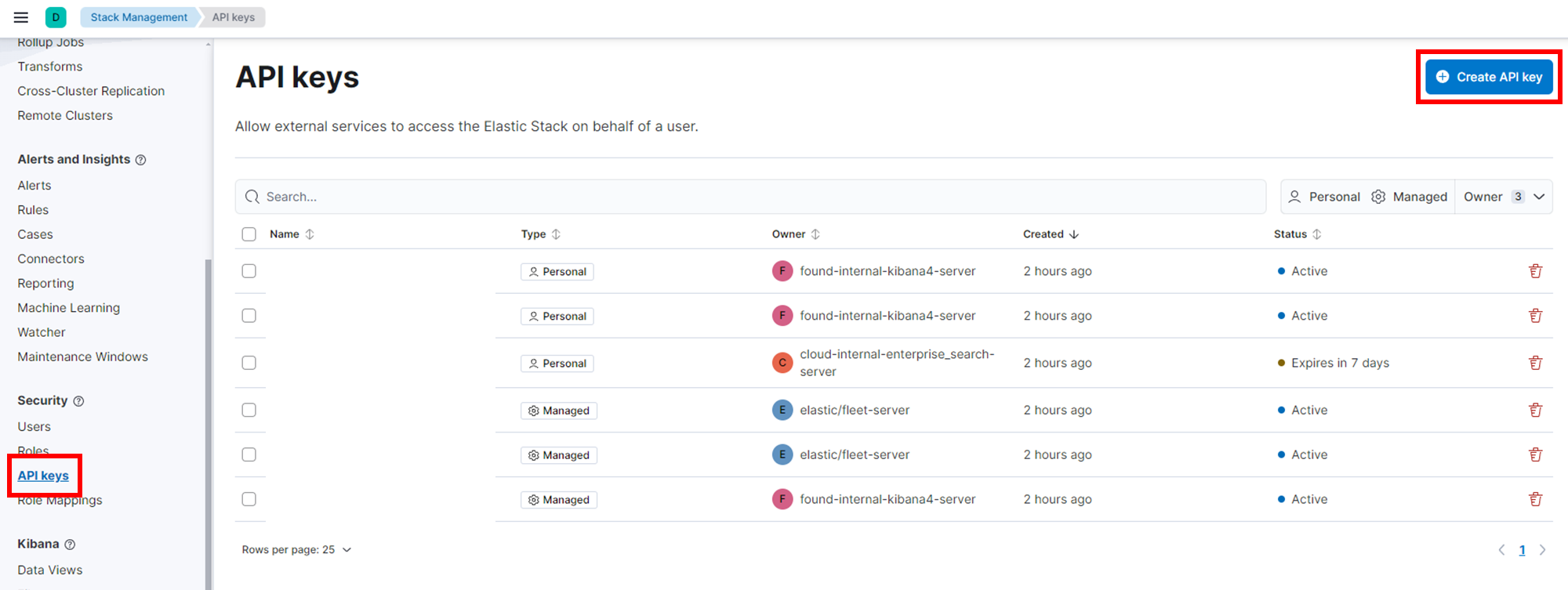 2) 좌측 메뉴 Security > API keys > Create API Key > 원하는 Name 입력