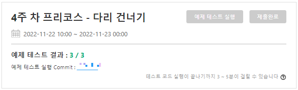 - 사용자가 이동할 때마다 다리 건너기 결과의 출력 형식은 실행 결과 예시를 참고한다.