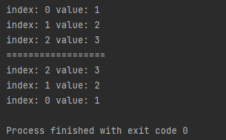 System.out.println("index: " + it.previousIndex() + " value: " + it.previous());